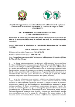 Recrutement de consultants pour animer des ateliers nationaux sur le recouvrement des biens et la gestion des biens saisis et confisqués au profit des autorités nationales compétentes |