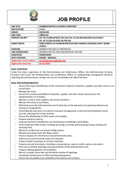 ADMINISTRATIVE & STORES ASSISTANT |