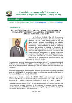 La Conférence des Chefs d’État et de Gouvernement de la Communauté Économique des États d’Afrique de l’Ouest (CEDEAO) a admis le Burkina Faso, le Mali et le Niger comme membres hors-CEDEAO du GIABA. L’admission des trois pays résulte de leur engagement politique fort à mettre pleinement en œuvre les obligations attendues des membres du GIABA, en l’occurrence la correction des lacunes dans leurs cadres de lutte contre le blanchiment de capitaux, le financement du terrorisme et le financement de la prolifération (LBC/FT/FP), ainsi que la coopération et le respect de toutes les obligations relatives à la lutte contre le blanchiment de capitaux, le financement du terrorisme et le financement de la prolifération tels que prévus par les Statuts du GIABA.